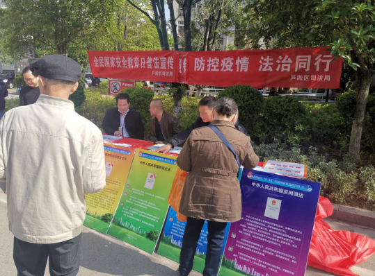 活动现场通过展出横幅展板,发放宣传图册,移动宣传广播,志愿者普法等多种方式,积极宣传《国家安全法》《反间谍法》《反恐怖主义法》《网络安全法》等国家安全教育的法律知识,结合“防控疫情、法治同行”专项法治宣传活动,深入宣传《传染病防治法》《突发事件应对法》《野生动物保护法》等法律法规和疫情防控相关法律知识。活动中还设有咨询台,为群众提供免费的法律咨询服务。