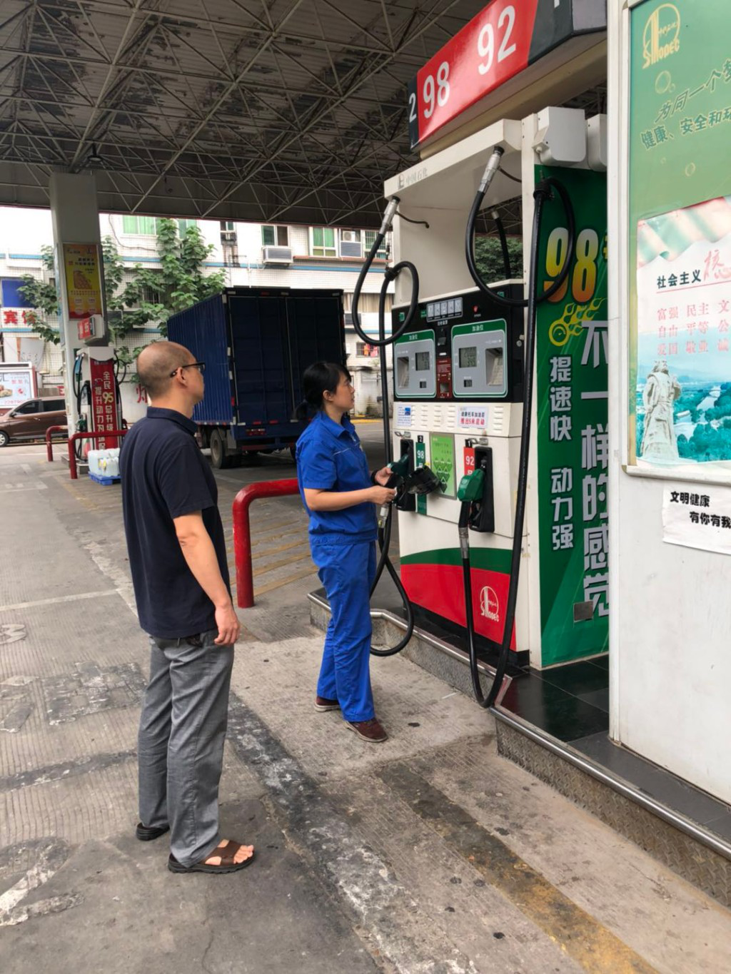 株洲市芦淞区应急管理局欧阳剑光副局长带队督查加油站是否存在允许顾客在加油机前扫码支付的情况