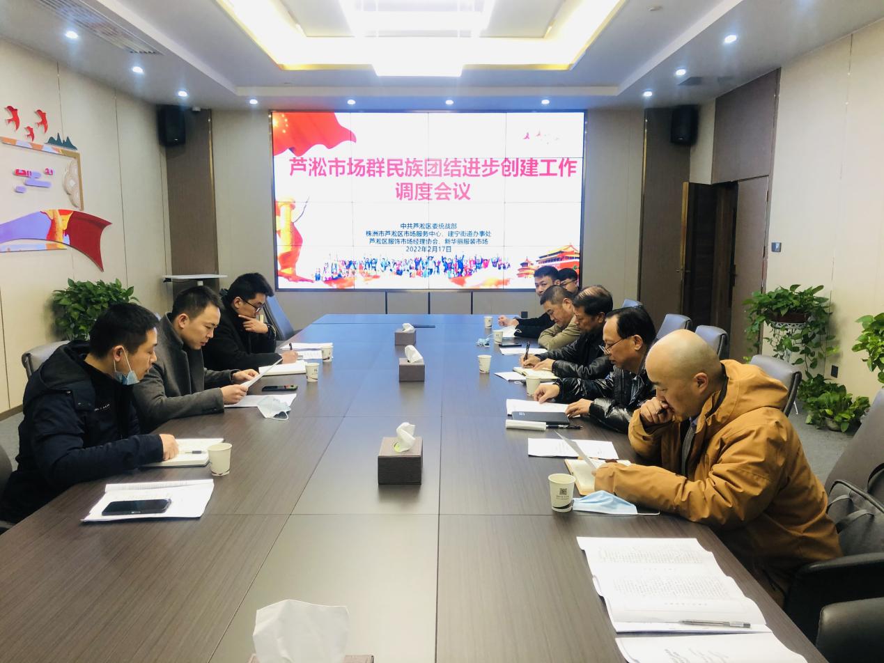 在工作调度会上,冯义洲听取了各单位关于民族团结创建工作进展情况的汇报,并对下一阶段工作进行部署。他表示,一是要精心准备资料。要以争创全省民族团结示范单位为目标,对照创建细则,主动谋划,扎实推进,确保创建工作取得实效。二是要加强宣传引领。要通过多种形式宣传党的民族团结理论政策,切实增强民族共同体意识,让"三个离不开"的思想深深扎根于各民族从业人员心中,在市场群营造浓厚的民族团结氛围。三是要丰富创建内容。要结合芦淞市场群实际,把民族团结创建工作与推进服饰产业发展,促进社会和谐相结合,不断提高创建工作质量和水平,提升芦淞市场群品牌影响力。