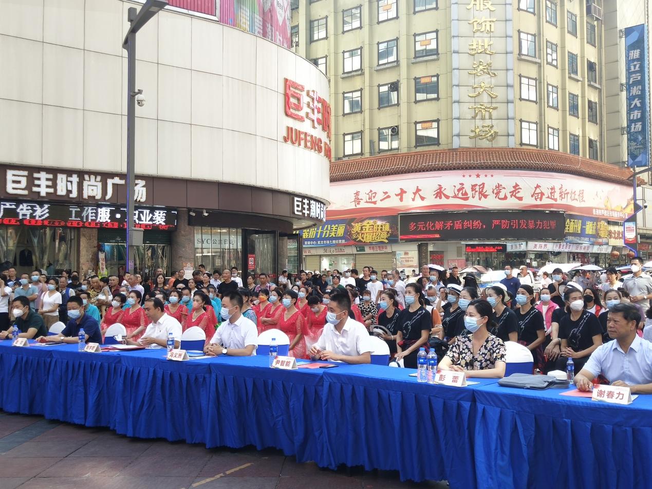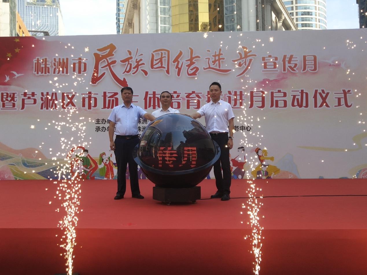 金秋时节石榴红,民族团结一家亲。9月9日上午,株洲市民族团结进步宣传月暨芦淞区市场主体培育推进月启动仪式在芦淞市场群服饰广场隆重举行。市委统战部副部长、市民宗局局长陈宇奇出席并致辞。区委常委、统战部部长冯义洲,芦淞服饰市场经理协会谢春力会长,市委统战部、市民宗局、芦淞区相关部门负责同志参加活动。