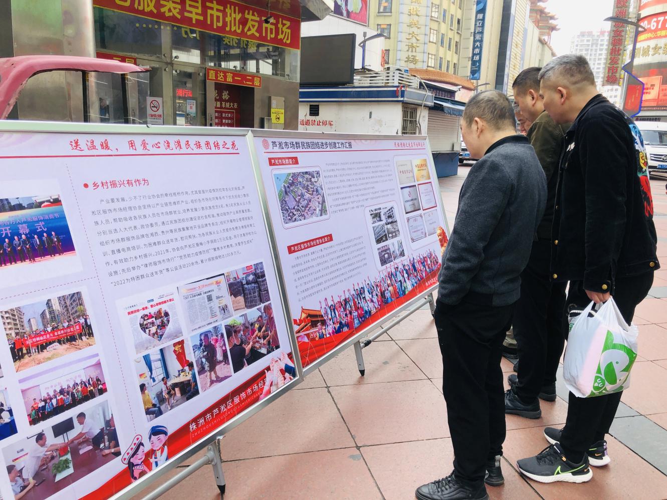 活动现场,工作人员向过往客商发放民族团结宣传单900余份,组织商户现场观看民族团结宣传展板,开展铸牢中华民族共同体意识教育。市三三一医院医疗团队现场为市场群从业人员开展健康咨询、健康筛查服务,为群众普及健康知识,提高大家对健康的正确认识,为株洲服饰行业的蓬勃发展保驾护航。