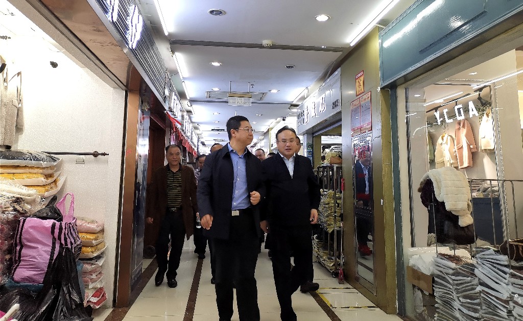 常铁威一行先后赴华丽、欧洲城进行调研,边参观边听取市场负责人有关促进消费工作情况介绍,并走进商家店铺,与经营户亲切交谈,了解店铺发展现状,询问就业人数、销售量和“双11”销售情况,特别了解了商家通过抖音等新媒体拓展销售渠道等做法。