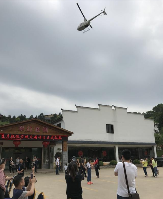 直升机低空观光旅游项目是华亿庄园与爱飞客航空俱乐部强强联合的运营项目,整个观光旅程历时30公里,目前共有4架直升机可供游客乘坐,每架直升机可容纳3人乘坐,游客可在高空从不同角度欣赏白关镇乡村美景。今后,项目将逐步完善飞行路线和时间,力争逐步扩大景点通航范围。