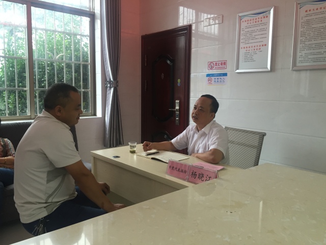 杨晓江在枫溪街道枫燎社区党代表工作室接待党员群众