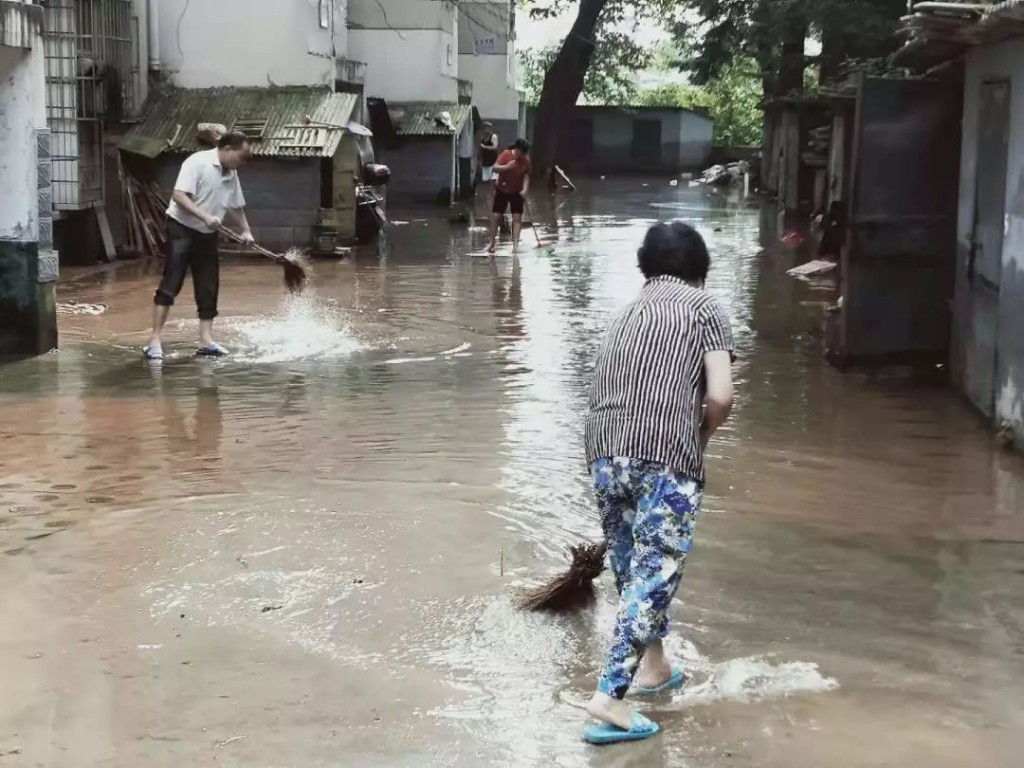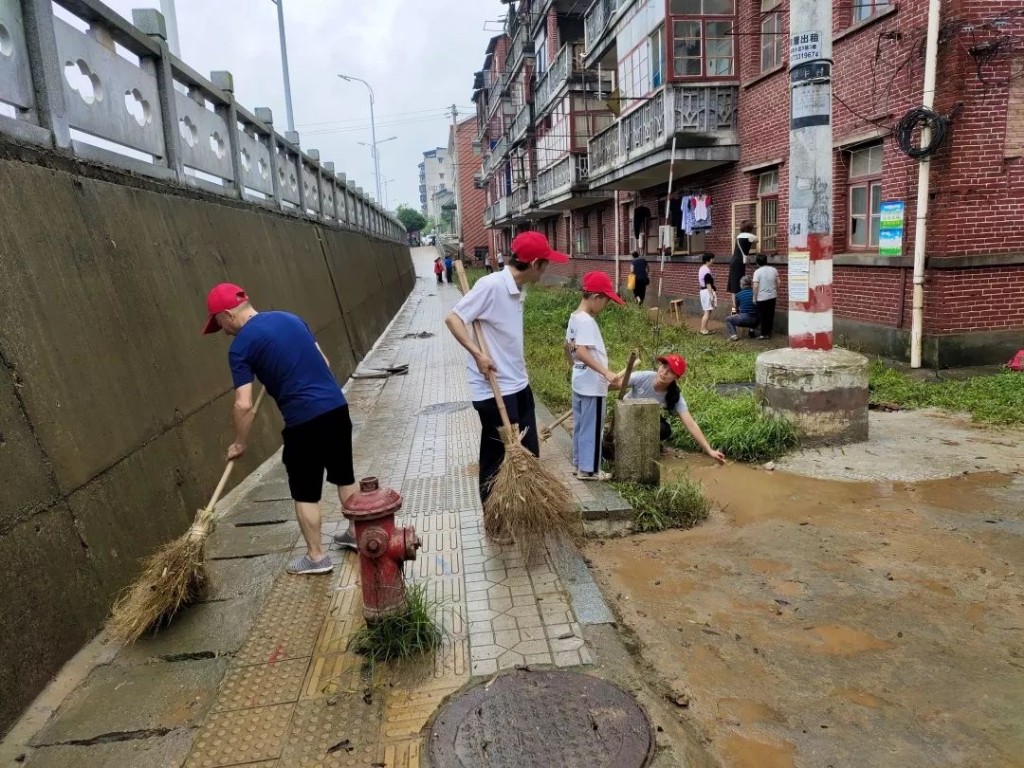 7月11日上午起受内涝影响,董家塅街道发动机关干部和社区工作人员100余人到南沿社区、南苑社区、南华社区、新立社区、新泉社区进行灾后清理,街道机关干部和社区志愿者齐上阵、同发力,干群同心共助居民重建家园。