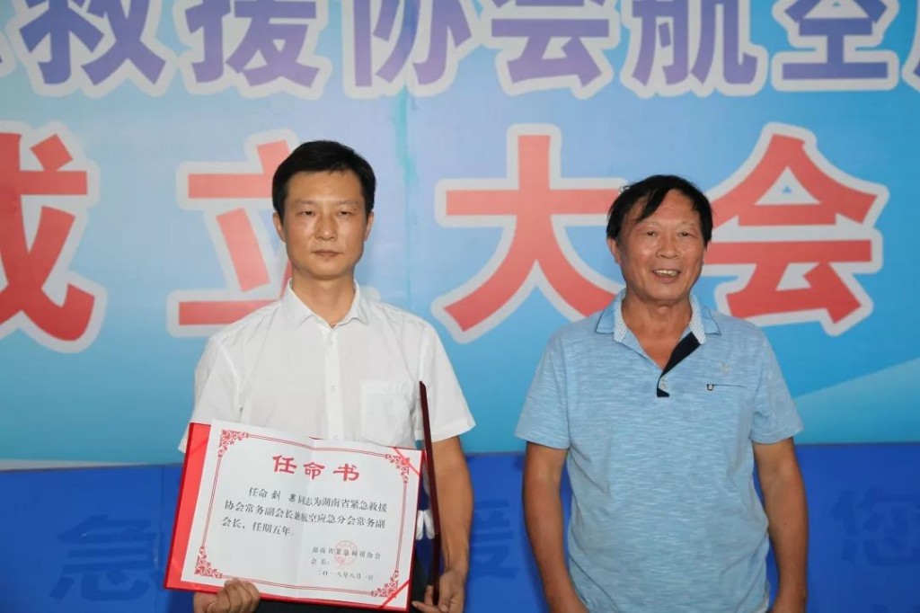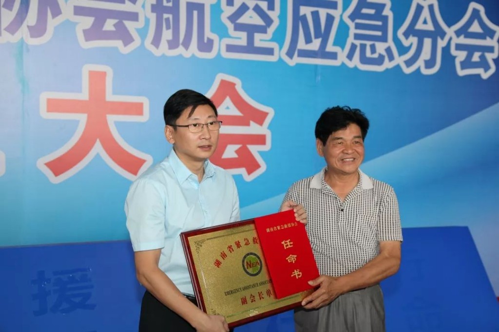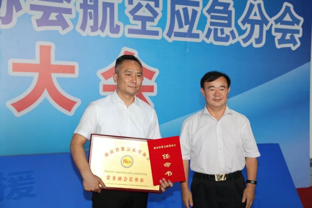 魏永景为省航空应急分会成员单位株洲通航发展公司授牌颁证