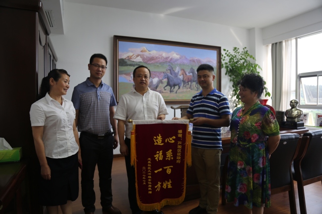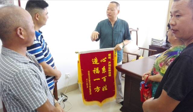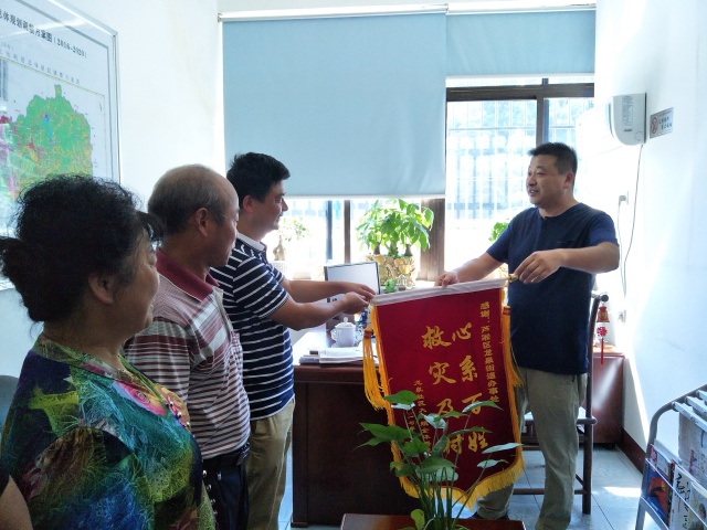 7月14日,芦淞区龙泉街道龙泉社区大冲组居民代表带着当地人民群众的浓浓情意,将“心系百姓,造福一方”的锦旗送到芦淞区政府,感谢区委区政府一直坚守在抗灾抢险一线的领导及全体人员,是他们用实际行动守护了居民的生命与家园。