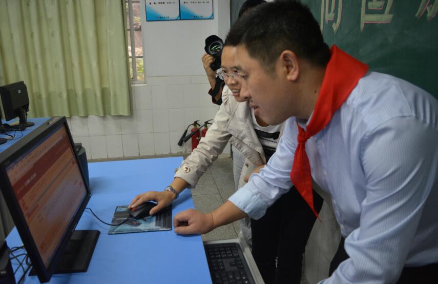 在观看完《为中华之崛起而读书》学生表演后,与会领导们到学校电脑室开展了网络签名活动,纷纷留言表达祝福。