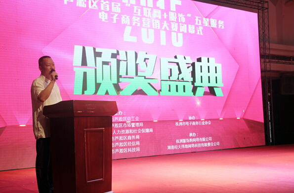 由芦淞区总工会、芦淞区市场管理局、芦淞区人力资源和社会保障局、芦淞区商务局、芦淞区经信局、芦淞区科技局联合主办,株洲市电子商务行业协会、株洲服饰购网络有限公司、湖南经天纬地网络科技有限责任公司承办的芦淞区2015年度“互联网+服饰”五星服务电子商务营销大赛暨第二届职业技能竞赛圆满落下帷幕。6月29日上午,大赛闭幕式暨颁奖仪式隆重举行,100多家参赛队伍、芦淞服饰城38个服装专业市场管理方代表以及部分服装经销商位出席了闭幕式,株洲市蜻依莲服饰有限公司、株洲市利一佳服饰贸易有限公司、好看店铺、乐乐店铺等获奖单位受到了表彰和奖励。