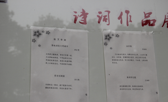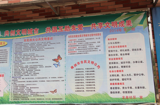 检查中发现,建设街道办事处、贺家土街道办事处、枫溪街道办事处、王塔冲社区、何家坳社区、大塘冲社区等几个单位未按要求及时更新创文宣传栏;建宁街道办事处、楠竹社区、龙泉社区创文宣传栏均已更新至2014年第一期。建宁办事处诗词作品展宣传栏还将诗词创作与创文工作相结合,富有特色,得到杨部长的肯定。本次检查还发现部分单位宣传栏存在老化褪色、破损、张贴不整齐、牛皮癣等现象,亟待整改。