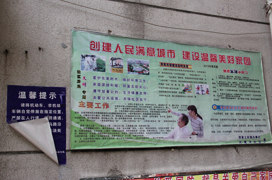 (贺家土街道大塘冲社区宣传栏未更新,张贴物卷角、脱落)