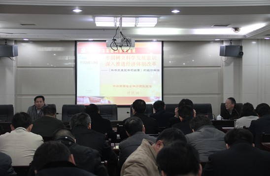 谭跃湘教授从“深刻把握科学发展的现实要求,增强深化经济体制改革的责任意识;深刻把握科学发展的丰富内涵,着力处理深化经济体制改革的核心问题;深刻把握科学发展的实践要求,落实深化经济体制改革的重大举措”三大方面,深入阐述了如何有效处理好深化经济体制改革中的核心问题,如何在实际工作中落实深化经济体制改革的重大举措,为我区干部牢固树立科学发展意识,深入推进经济体制改革提供了全面的指导。