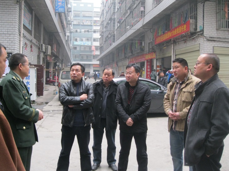 1月9日,芦淞区委书记冯建湘,副区长王冬,区安监局局长颜良青、区消防大队长曾治安等一行在龙泉街道党工委书记言锐、办事处主任黄永立,副书记何荣的陪同下,对龙泉街道康泰服饰园进行春节前夕安全生产工作视察。