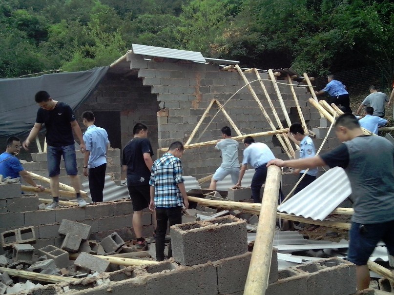 例如8月中旬,谭家塅村虎形组王某在未办理任何报建手续组织大量民工用泥土取代水泥用大砖进行抢建,拆违大队执法队员当场责令其停工,并找到当事人询问相关事项,当事人称“这是跟村上承包的土地”,为了打击这种势头,拆违大队对其所建房屋实施拆除,在拆除的过程中,当事人企图做出过激的行为,被拆违大队队员及时制止。