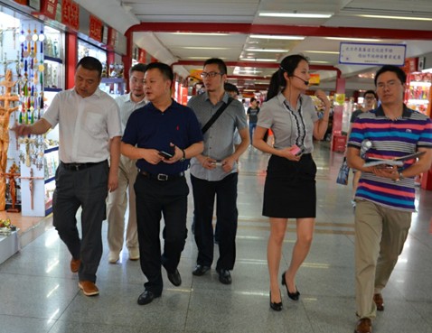 7月24日,考察团一行抵达义乌,在义乌中国小商品城集团股份有限公司市场负责人的陪同下实地考察了小商品城玩具购物旅游特色街、进口商品馆、义乌国际博览中心、物流集散分中心、义乌经济技术开发区等,详细了解商贸城管理、展会经济、物流及前店后厂模式、商贸城周边配套设施开发建设等情况,并听取义乌中国商贸城集团股份有限公司总经理助理胡衍虎对“义乌”模式的诠释及义乌商贸城远景规划情况。