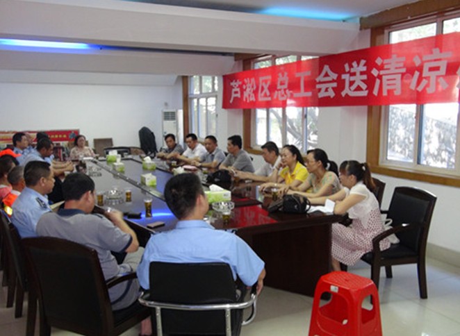 7月26日,芦淞区副区长陈湘伟,区副县级干部、总工会主席黄钢一行来到区环卫处,向一线城管环卫职工送去2万元慰问资金、5万元防暑降温物质。陈湘伟副区长、黄钢主席感谢他们在城市市容环境卫生管理中做出的贡献,拜托一线职工在做好工作的同时,特别注意防暑降温和安全作业,防止意外事故发生。