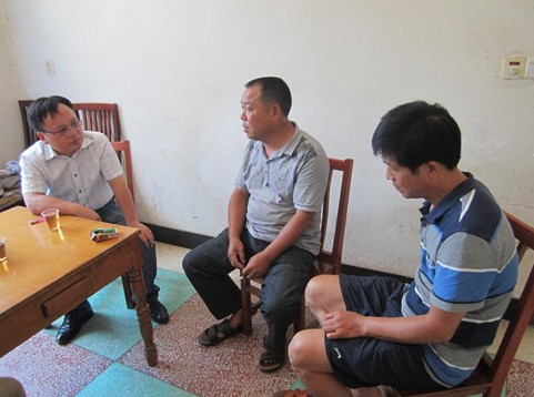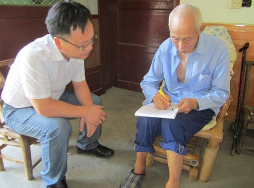 张是钦同志和董明华同志都是村上的老党员,曾经为党和国家的事业奉献了自己的一份力量。尤其是张是钦同志,曾是地下党员,现已年过八旬,体弱多病不能行走,且老伴瘫痪在床,儿子也腿部残疾,家境十分困难。得知老人由于疾病已经失去听力,汤主任便在纸上写下对他的慰问和祝福,老人看到之后,用颤抖的手写下了“谢谢党及各位的关怀”几个字表达感激之情。