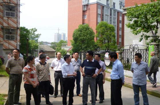 5月17日下午,常德市委政法委副书记、综治办主任饶南丙一行来到芦淞区董家塅街道欣月社区考察社区党建以及社会化管理创新工作。株洲市民政局基政处处长张金华、区政法委副书记张涛、区民政局局长刘中南、董家塅街道党工委书记宋扬、办事处主任吴新泉等领导陪同。
