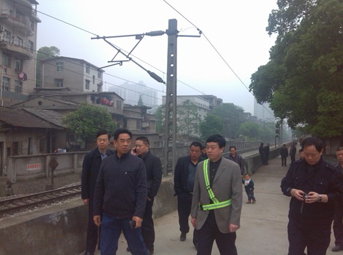 4月26日上午,市政法委副书记、综治办主任罗高其,芦淞区政法委书记、公安局芦淞分局局长尹自力,芦淞区人民政府副区长陈湘伟一行莅临龙泉街道就铁路护路进行现场调研,就有关事项与广铁集团长沙工务段党委书记陆开永进行了协商和沟通。协调组就京广铁路龙泉社区大冲组段铁路护坡施工、铁路栅栏封闭、铁路边公路路灯增设、人行天桥修建等问题进行了座谈和调度,并达成了一定共识。龙泉街道党工委书记言锐、办事处主任黄永立带领街道办、社区和组相关人员陪同调研和参与协调。