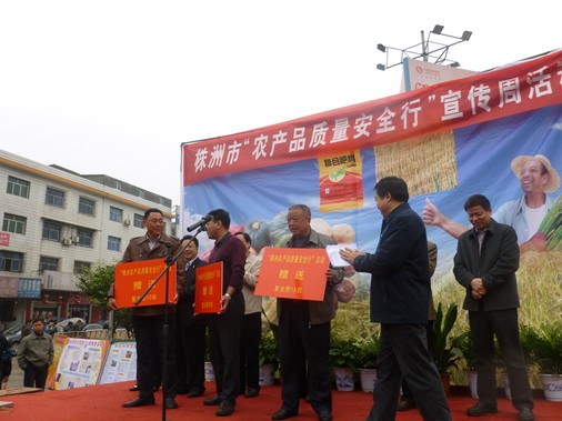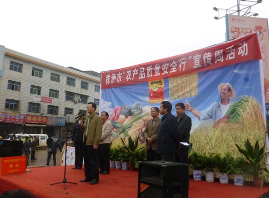 4月24日上午,株洲市“农产品质量安全行”组委会在芦淞区白关镇中心广场举办大型“农产品质量安全行”宣传活动,株洲市农业局、市工商局、市粮食局、市畜牧局、市商务局、市质监局、芦淞区农村工作局、区工商局、白关镇政府等相关部门200余人参加了活动,市委常委、副市长蔡典维做了重要讲话,市人大副主任汤少云等领导出席了活动。