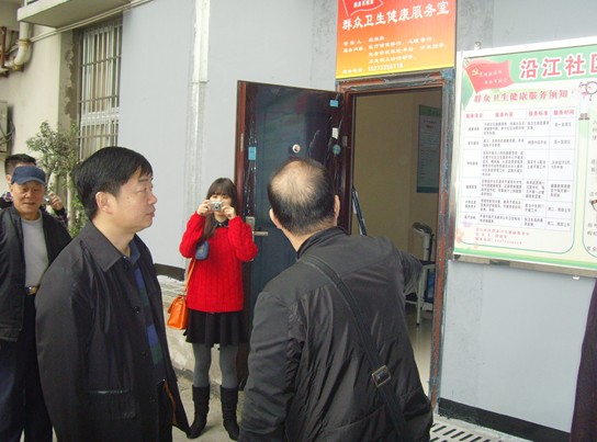 沿江卫康室的片医团队详细介绍了社区卫康室的布置、工作内容、工作方式等,得到了区组织部领导的肯定。沿江社区卫康室自2013年3月中旬正式成立, 免费服务社区居民200余人次,多次组织社区居民量血压、测血糖、开展健康知识讲座、宣传控烟知识,并成立了沿江社区高血压自我防控管理小组,受到了广大社区居民的欢迎。陈丰华勉励沿江卫康室年轻的服务团队,以不一样的服务模式,真正为社区居民的健康服务做好事、做实事,争创示范卫康室。