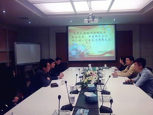 3月28日上午,市科技局党组成员、市高新办主任邓冬明一行8人,就株洲市服饰公共服务平台项目申报来新芦淞集团进行考察交流。