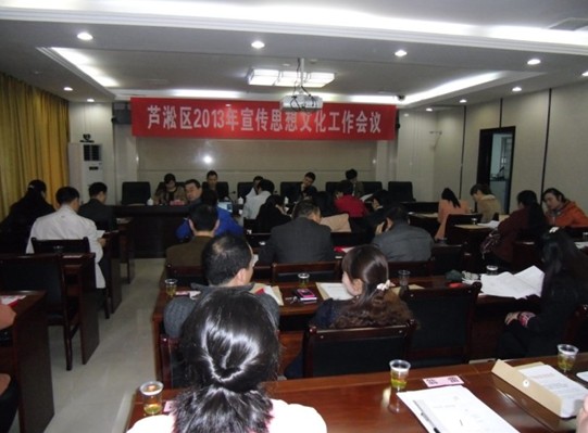 3月28日上午,芦淞区宣传思想文化工作会议在区中心组会议室举行。本着精简会议的原则,此次会议将宣传思想工作会议和文体新工作会议一并召开,既对2012年的宣传思想文化工作进行了总结表彰,也对2013年的工作进行了安排部署。会议由副区长曹运社主持,区委常委、宣传部长杨晓江做了重要讲话。各党委口宣传委员、各乡(镇)、街道主要负责人及文化站站长等出席会议。