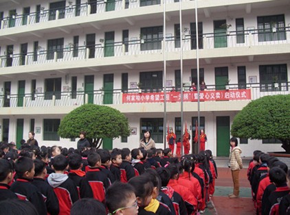 周会课上,何家坳小学分别在两个校区开展了希望工程 “一元捐”启动仪式。 通过启动仪式,学校很好地宣传了“一元捐”希望工程的理念,学校大队部还将 在本周五下午以爱心义卖的形式进行此项活动的开展从而进一步弘扬了何小的爱 心、感恩文化。
