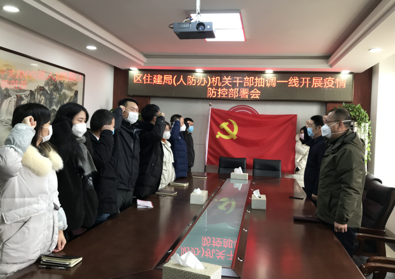 区住建局抗击疫情宣誓仪式,局党委书记、局长陈新明为工作队送行并提出具体要求