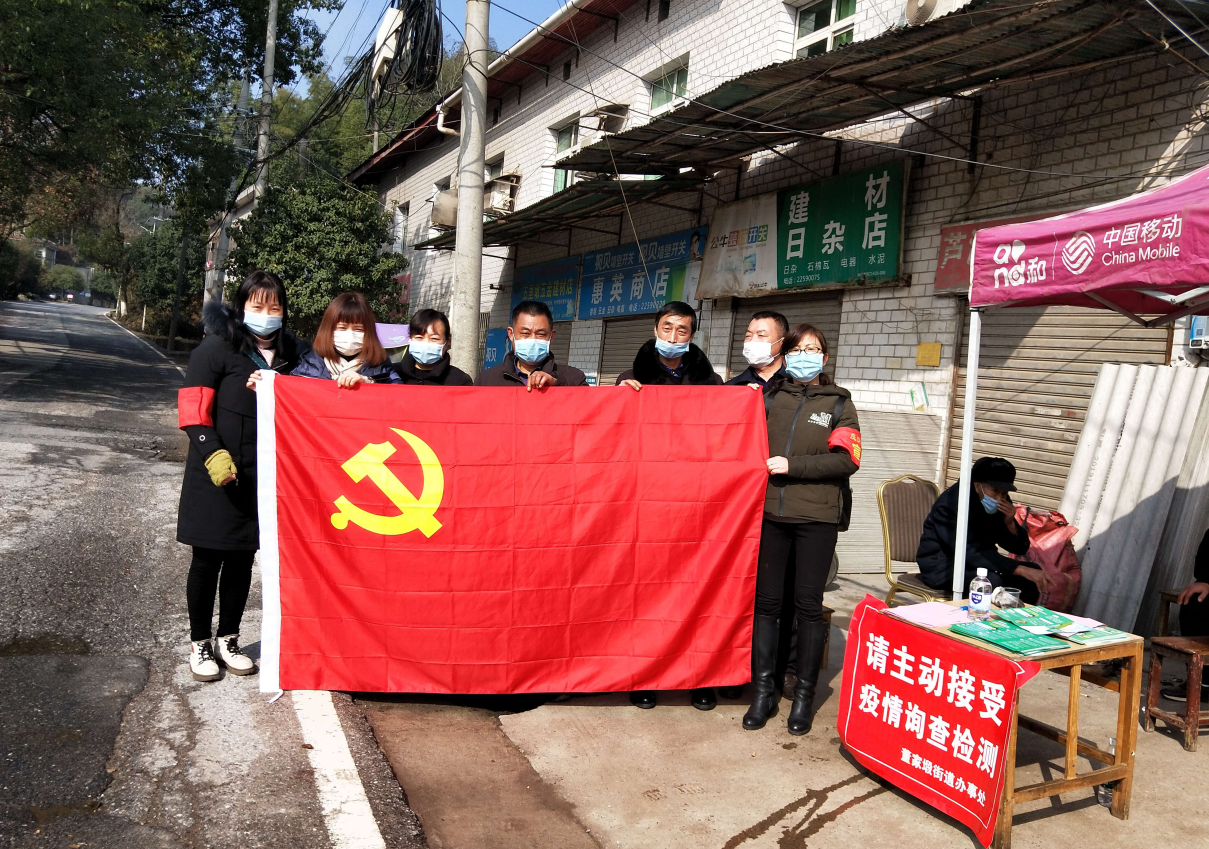 危难当前党旗飘扬,阻击疫情党员先行。疫情爆发以来,董家塅街道全体党员干部带头与志愿者昼夜在辖区重要路口和聚居地进行轮班值守,并对出入的车辆、人员进行登记排查、体温测量、防疫宣传。新立社区党支部书记彭映玲表示:我们没有防护服,只有一个口罩,虽然不能像医护人员那样治病救人,但我们能立足岗位、用简单的问候,重复的话语,锲而不舍的坚守与大家一起砥砺前行,这就是党的力量!