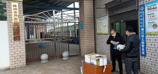 “本人有两箱84消毒液,免费提供给大家,一户只能一瓶,有需要的来幼儿园领。”湘江村微信群里的一句话,立即引发村民一片点赞。湘江村干部曹子龙、王兰看到信息后,第一时间赶到湘江幼儿园,配合发放防疫物资。