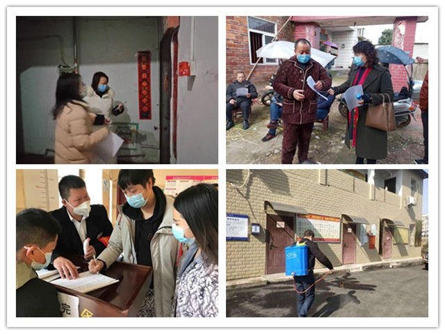 荷叶冲社区干部加班加点上户核查辖区湖北籍返乡人员情况,她们是巾帼英雄;华兴村干部上门劝告村民停办丧事,苦口婆心的劝说只为守护你的平安;杨柳冲社区在曼哈顿小区对进出人员进行体温检测,及进行登记,用一丝不苟的态度坚守在百姓身边;黄田村对公共场所进行消毒,岁月静好,是因为有人在负重前行。
