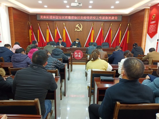 1月30日下午,龙泉街道再次召开新型冠状病毒肺炎疫情防控工作紧急调度会,区委常委、组织部长易喜仁,街道党政领导班子、机关各股室负责人、各村(社区)书记、主任参加会议。