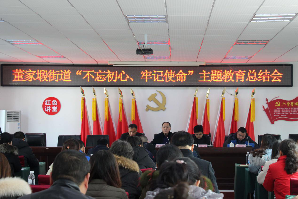 1月19日下午,董家塅街道在四楼会议室召开“不忘初心、牢记使命”主题教育总结会议,区委第八指导组副组长周乐、组员冯亮,街道党政领导班子成员,机关全体党员,村(社区)支委成员、党建专干参加会议。