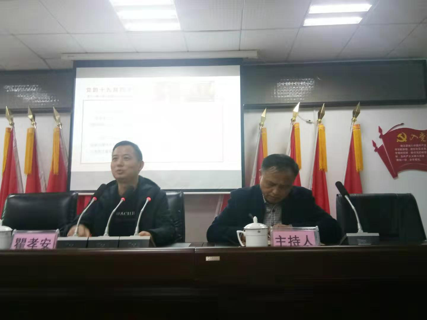 为深入学习贯彻党的十九届四中全会精神,12月17日,芦淞区委宣讲团成员、区文旅体局局长瞿孝安来到董家塅街道办事处作党的十九届四中全会精神宣讲。会议由办事处主任陈小伍主持,街道机关干部、村(社区)工作人员共60余人参加学习。