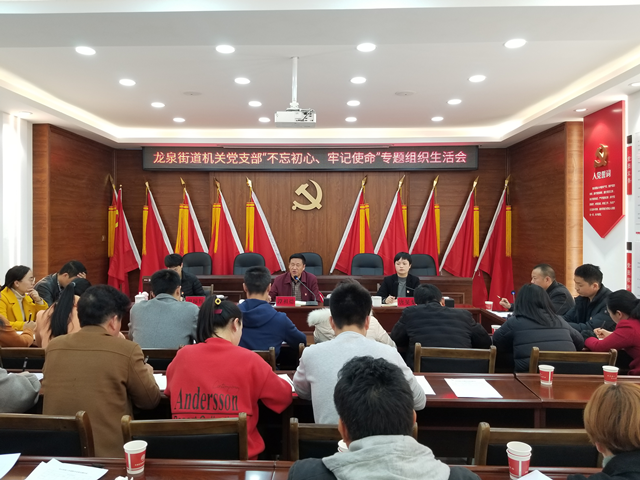 12月12日下午,龙泉街道机关党支部组织召开“不忘初心、牢记使命”专题组织生活会暨民主评议党员会议,市委“不忘初心、牢记使命”主题教育第十指导组组长谭祖德同志、指导组副组长唐旻粲同志以及指导组成员尹琼红同志,区委组织部副部长、区委两新党工委书记刘晓敏同志、区委组织组组长肖晶同志到会指导,龙泉街道机关党支部全体党员参加及4名群众代表列席会议。
