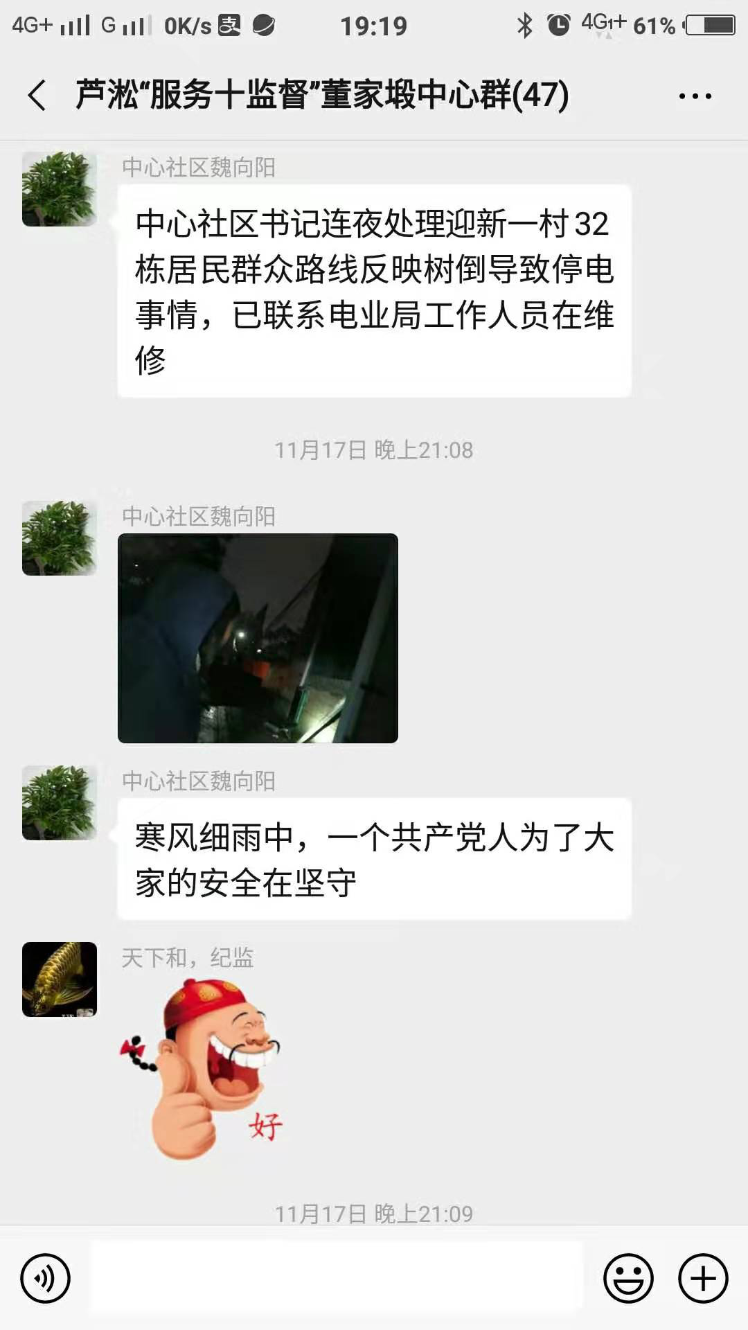 “魏书记,多亏你们连夜处理我们楼栋停电问题,让我们尽早用到电、恢复正常生活。”“感谢这个微信群的创建,让我们足不出户就可以了解办理社区医保相关程序和就业政策,少跑很多冤枉路,真是太好了。”这两天董家塅街道“服务+监督”村(社区)微信群里跳出了几十余条感谢信息,切实解决了群众身边的烦心事、操心事、揪心事,在入冬之时极大的温暖了人心。