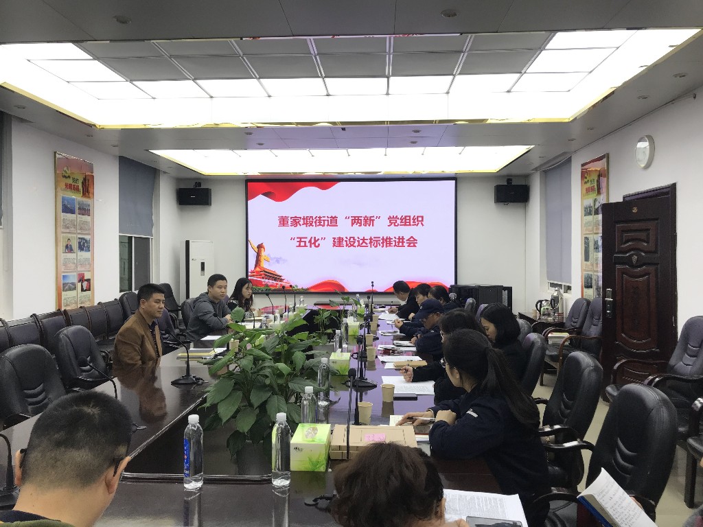 11月25日,董家塅街道组织“两新”党组织在街道三楼会议室召开“五化”建设达标推进会,区委党校副校长高鑫,街道党工委委员、纪工委书记李斌,街道党建办主任戴伽,“两新”党组织书记参加会议,会议由李斌主持。