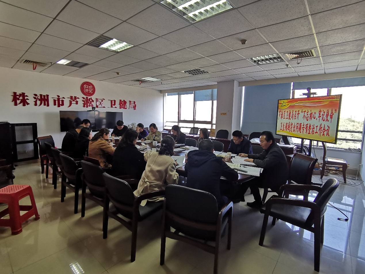 为认真贯彻落实"不忘初心、牢记使命"主题教育要求,进一步强化宗旨观念、坚守人民立场,11月20日,芦淞区卫健局召开卫生健康领域突出问题专项整治工作会议。