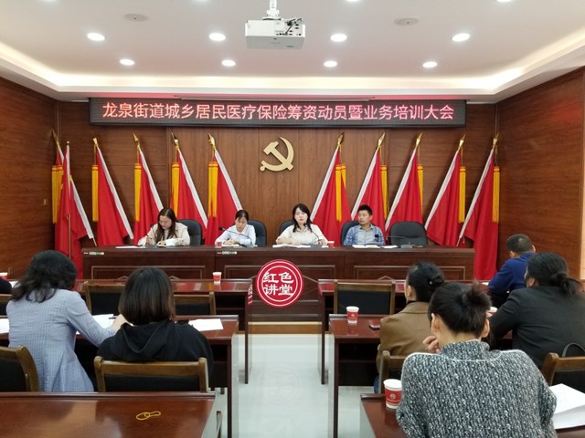 近日,龙泉街道召开2020年度城乡居民医疗保险筹资动员暨业务培训大会。区医疗保障局副局长邹熹、龙泉街道办事处副主任邓东、龙泉街道劳保站和各村社区劳保专干参加。
