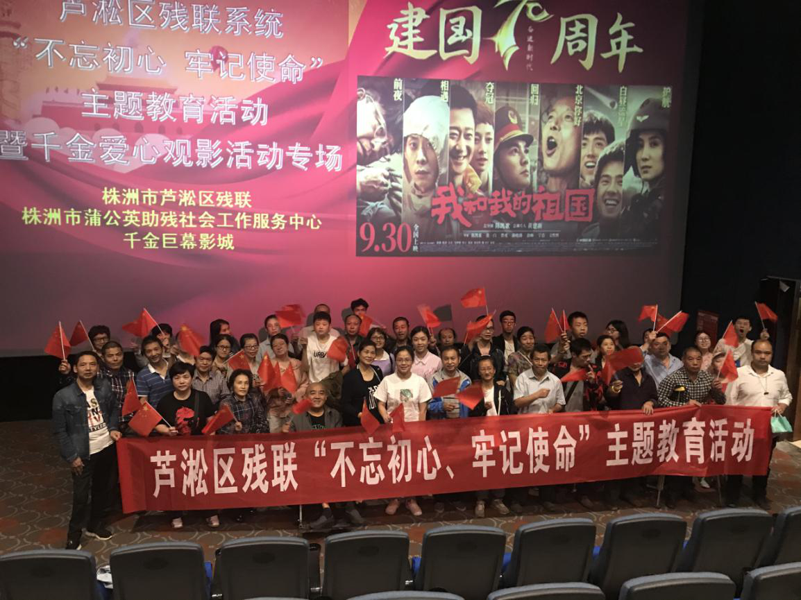 为学习宣传贯彻习近平新时代中国特色社会主义思想和党的十九大精神,弘扬爱国主义情怀,丰富精神文化生活,提升残疾人奋发向上、身残志坚、自强不息的坚强品质,2019年10月11日,芦淞区残联以“不忘初心、牢记使命”主题教育观影活动为主题,组织观看电影《我和我的祖国》,辖区残疾人代表、残疾人工作者、残疾人服务机构对象代表共100余人参加活动。