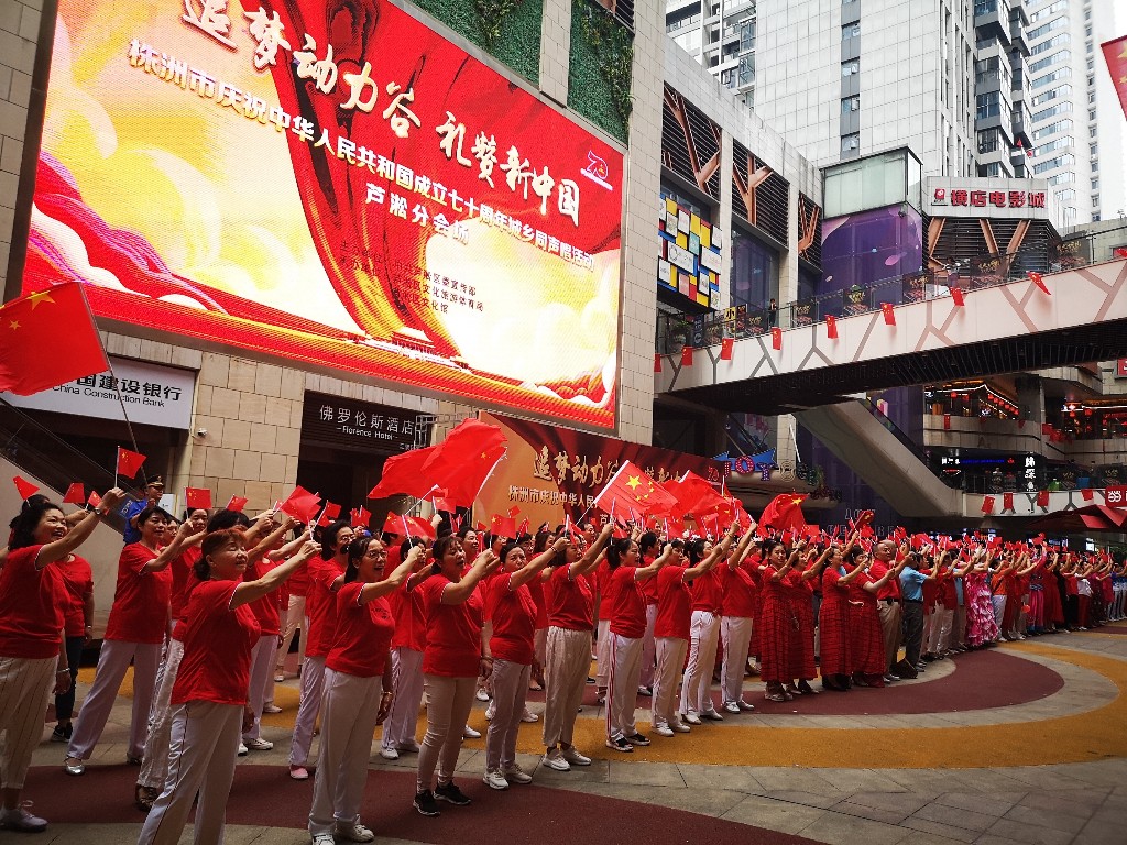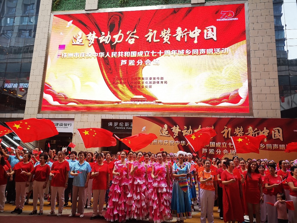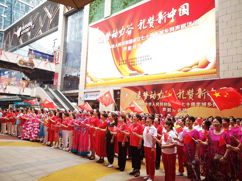 为庆祝中华人民共和国成立70周年,9月26日上午,由中共芦淞区委宣传部主办,芦淞区文化旅游体育局、芦淞区文化馆承办的“追梦动力谷 礼赞新中国”庆祝中华人民共和国成立七十周年城乡同声唱活动在大汉·悦中心精彩上演。来自辖区20多支文艺团队的千余名文艺爱好者以及现场群众参加了此次规模宏大的歌会,为节日的株洲书写了气势恢宏的动人乐章。