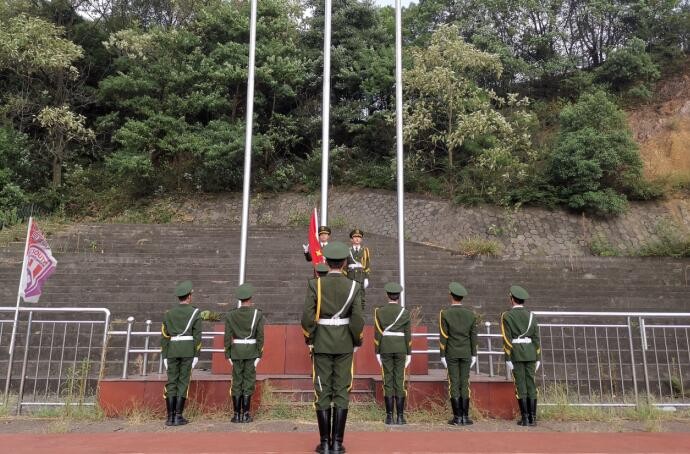淞南中学国旗护卫队迎着炙热的阳光,在激昂的旋律中齐步走入升旗区,五星红旗伴着雄壮的国歌冉冉升起,全校师生庄严肃穆的同唱国歌,为此次活动正式拉开了序幕。