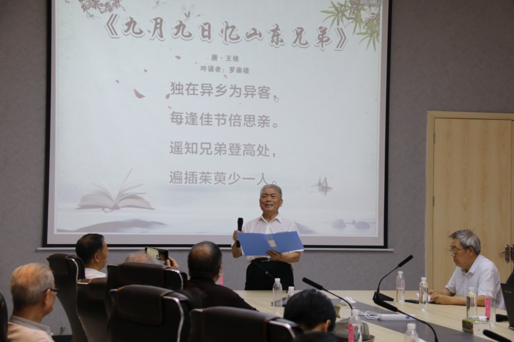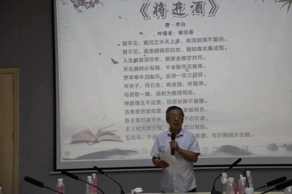 最后,与会代表的经典诗词吟诵将活动推向高潮。他们演绎的《将进酒》、《诗经.小雅.菁菁者莪》、《鹊桥仙》、《九月九日忆山东兄弟》、《江南逢李龟年》、《水调歌头》等,声律平仄呼应,韵律抑扬高低,或长歌豪迈,或小曲低回,且吟且诵,无不表现出“情动于中而形于言,嗟叹之不足而咏歌之”中华经典诗词之美。活动在经久不息的掌声中结束。