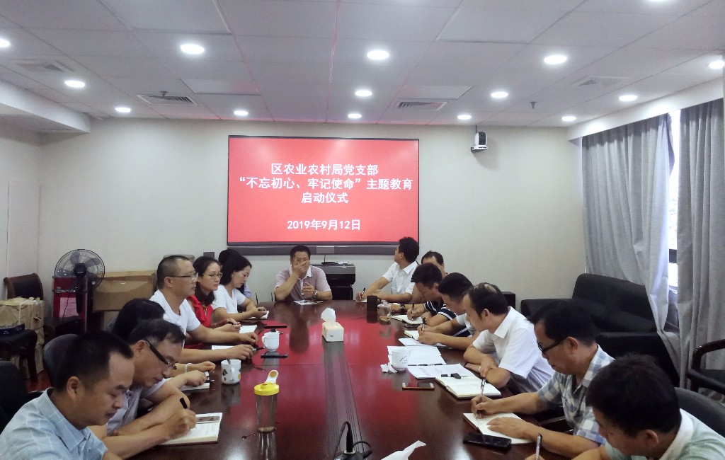 9月12日下午,区农业农村局党支部举行“不忘初心、牢记使命”主题教育工作启动仪式,全体党员干部参加。