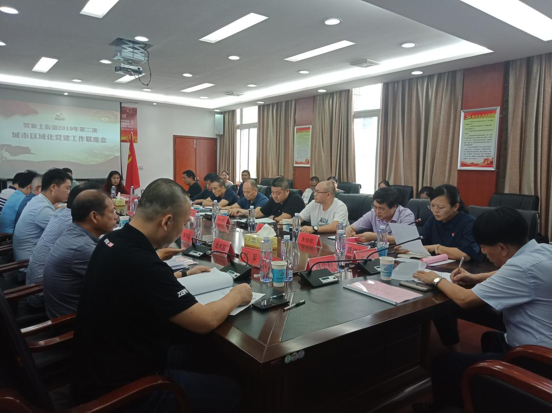 为深入推进城市区域化党建工作,不断强化城市基层党组织引领社会治理作用,8月26日,贺家土街道召开2019年第二次城市区域化党建工作联席会,区政协党组书记、主席陈光国及街道16家大工委成员单位负责人参加会议。