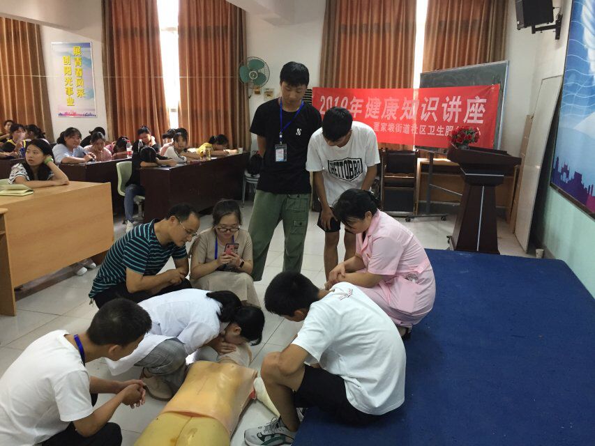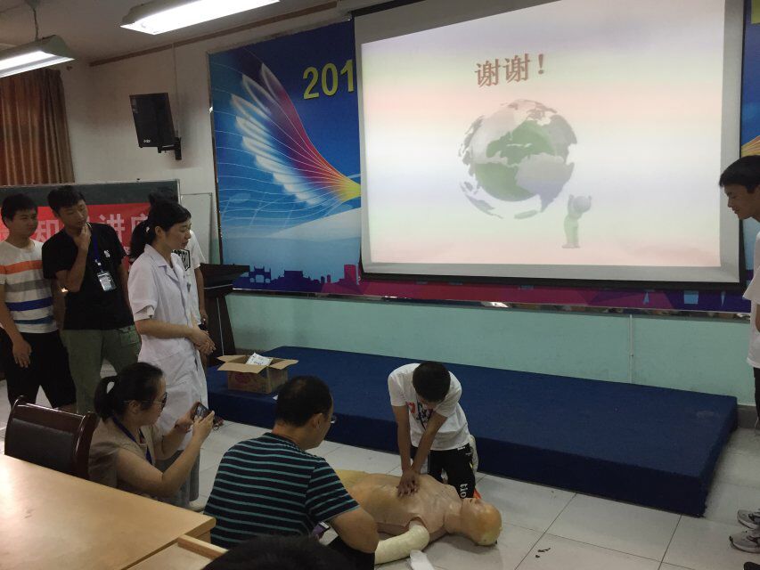 为普及学校师生急救知识,提高青少年的应急救护能力,应南方航空技校邀请,董家塅街道社区卫生服务中心组织医务人员于8月23日到南方航空技校南、北校区开展急救技能培训。