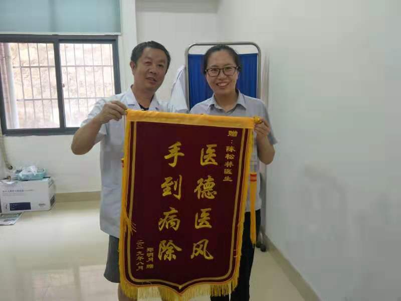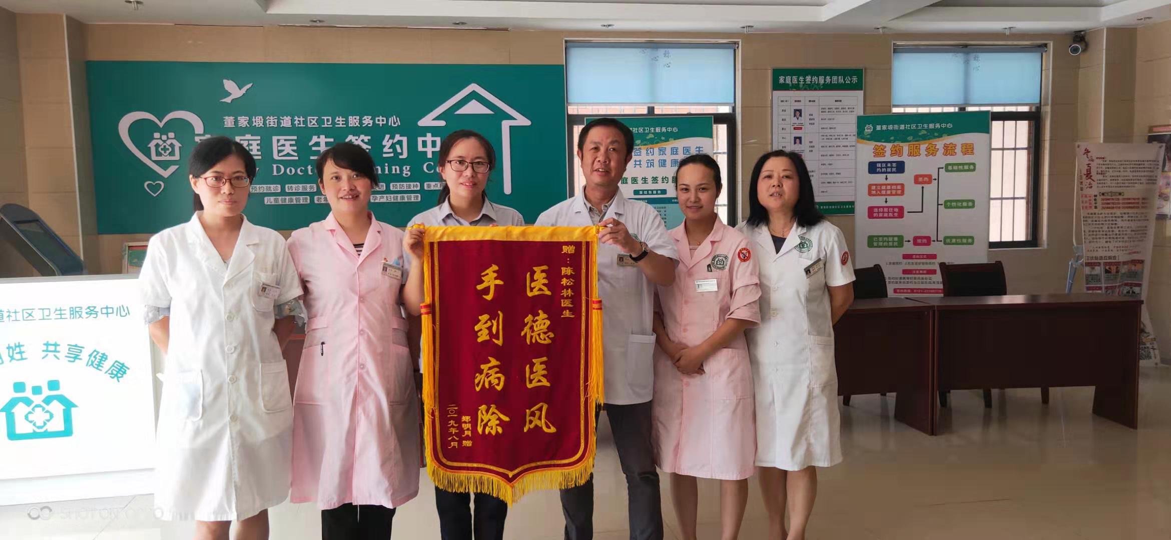 2019年8月19日,在中国医师节到来之际,患者郑明月将一面写着"医德医风 手到病除"的锦旗亲自送到董家塅街道社区卫生服务中心,表达对董家塅中心医务人员,特别是陈松林医生的感激之情。