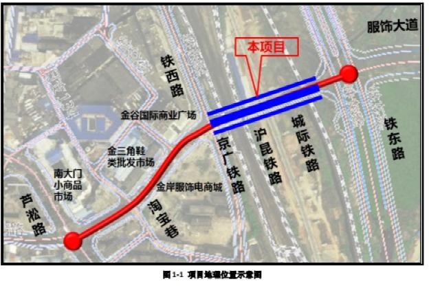 该项目西起铁西路,东至铁东路,与果园路、服饰路相连通,下穿三条铁路,全长166米,规划路幅宽21.5米至25米,双向四车道,道路等级为城市次干道。建设内容主要包括道路、桥涵构造物、铁路防护与改造等。