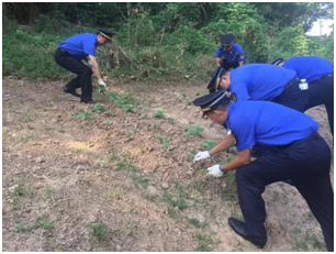 为迎接新中国70周年大整治,大扫除活动。8月5日上午贺家土城管派驻中队、社区爱卫专干、志愿者对白石港河堤菜地,河堤枯树枝及捡拾河堤白色垃圾展开集中整治。